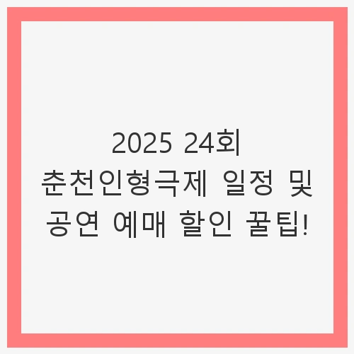 👉2025 24회 춘천인형극제 일정 및 공연 예매 할인 꿀팁! 바로가기
